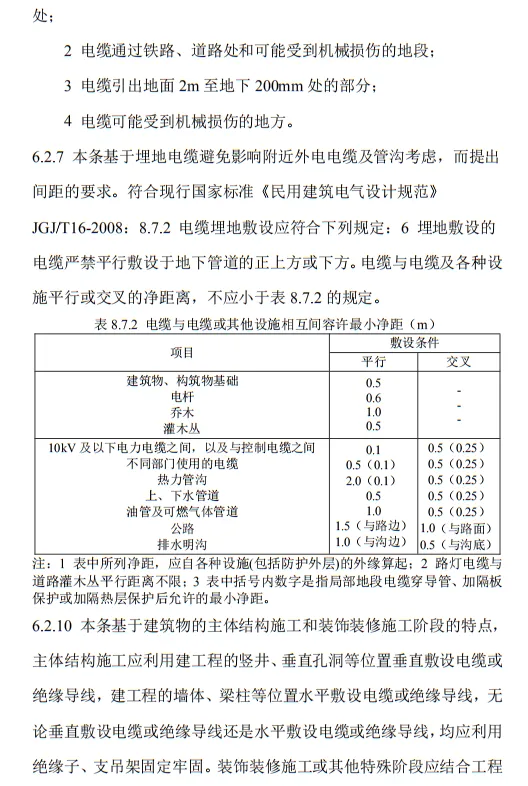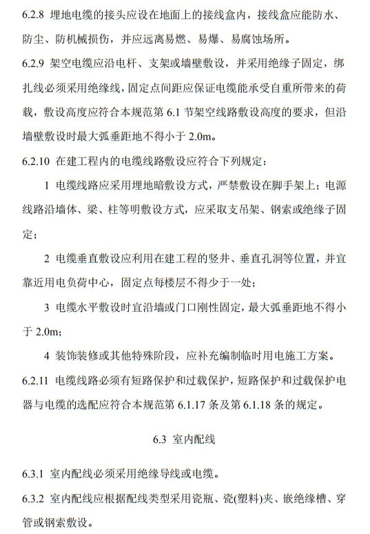 6.2.3 電纜線路應采用埋地或架空敷設,嚴禁沿地面明設,并應避免機械損傷和介質腐蝕。埋地電纜路徑應設方位標識。