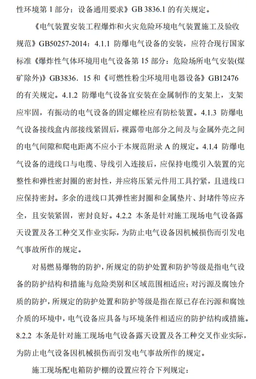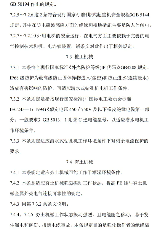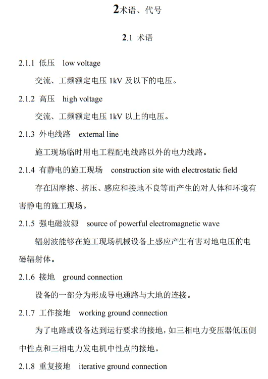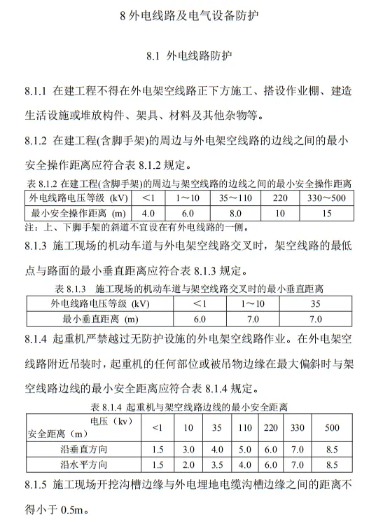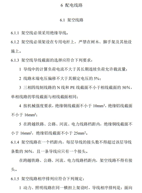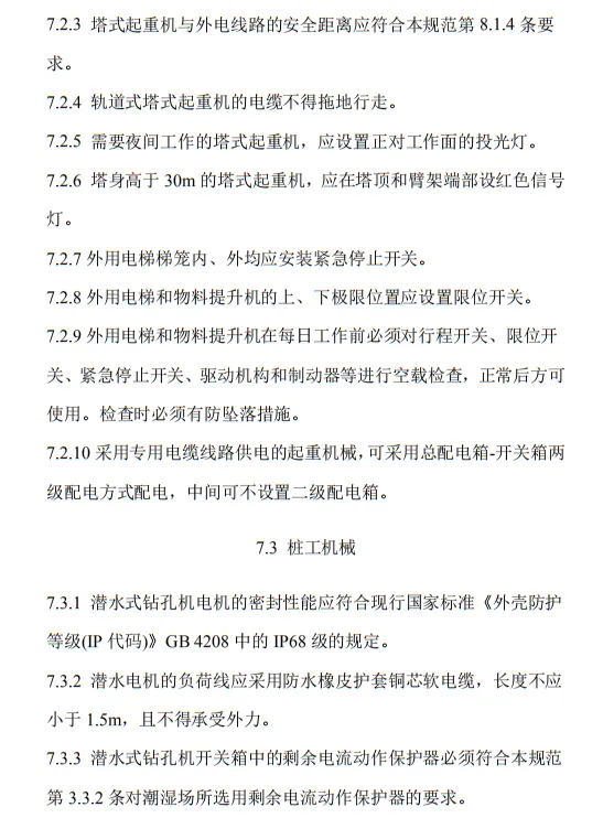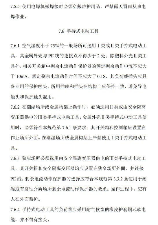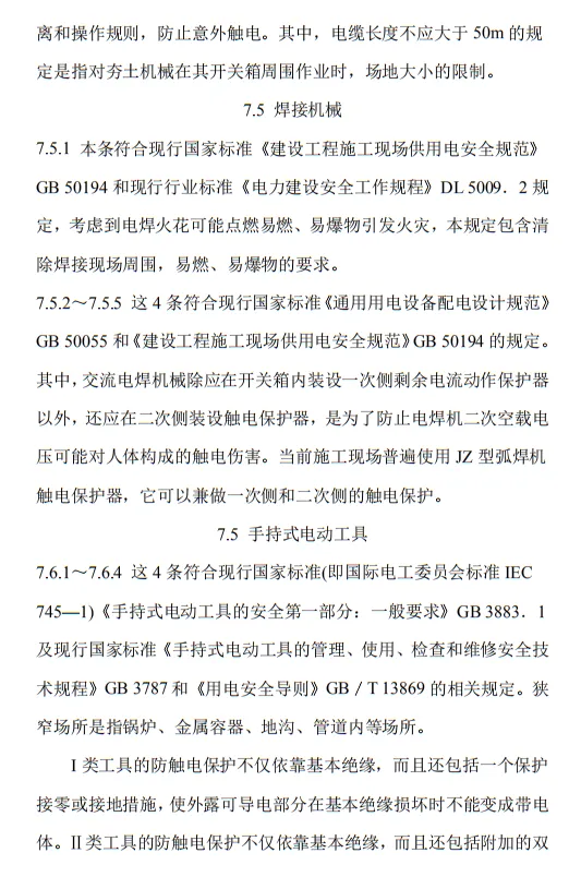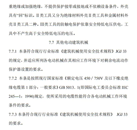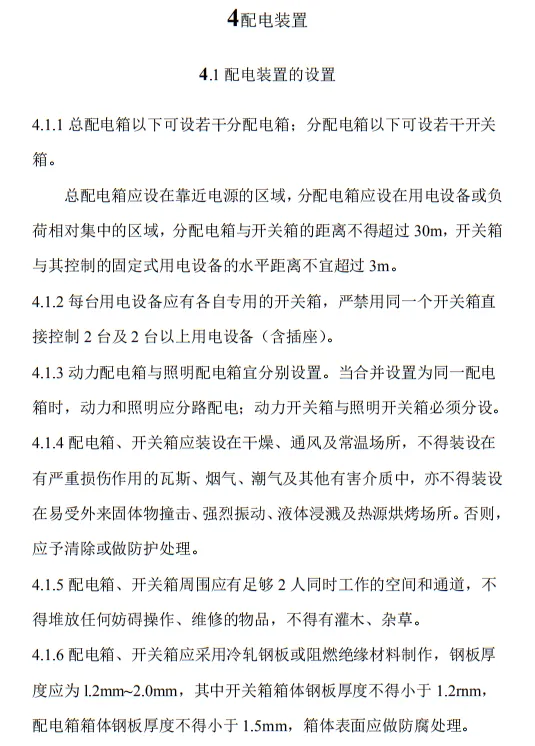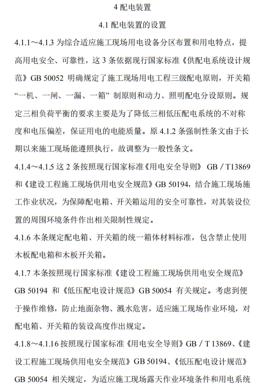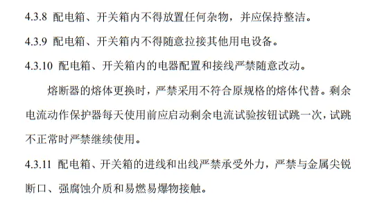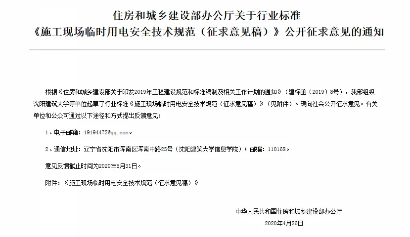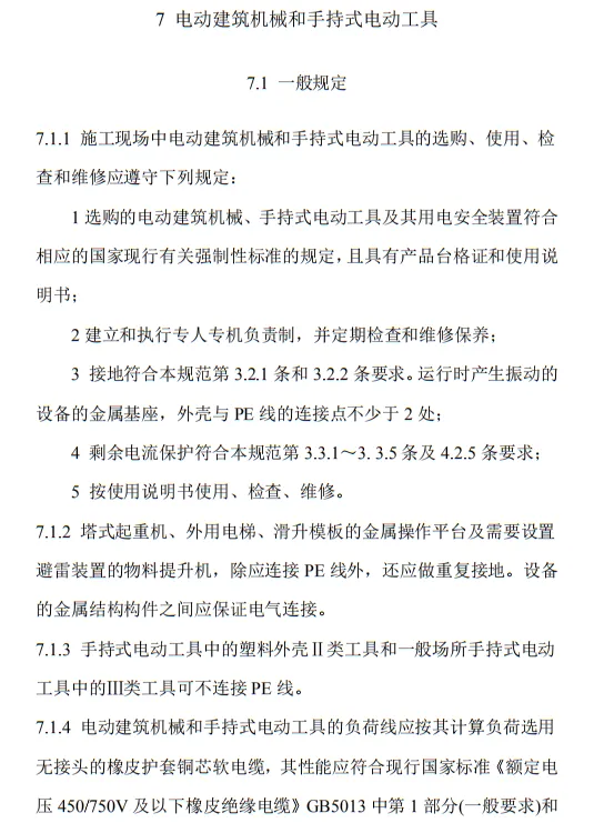 近日,住建部官網發布文件,對行業標準《施工現場臨時用電安全技術規范(征求意見稿)》公開征求意見。2、增設“剩余電流保護”為正文單獨一節,補充對剩余電流保護的規定;3、將原“配電箱及開關箱”一章更名為“配電裝置”;4、補充鋼索配線中對鋼索的截面、布設以及固定的規定;5、增加對采用專用電纜線路供電的起重機,可采用兩級配電方式的規定;6、補充臨時用電工程管理需完善安全技術檔案的規定;經整理,此次征求意見稿中共有11條強制性條文。分別如下:3.2.11 PE線上嚴禁裝設開關或熔斷器,嚴禁通過工作電流,且嚴禁斷線。