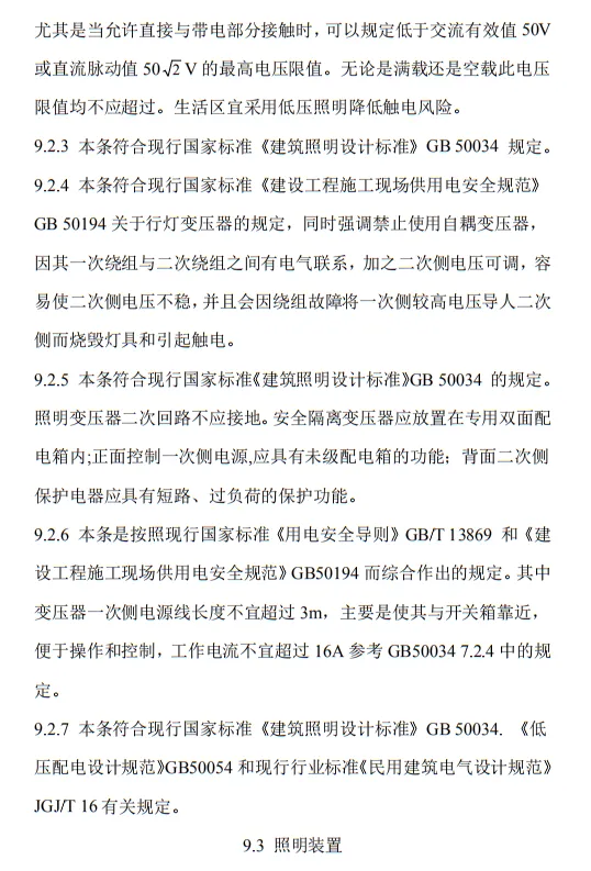 9.2.5照明變壓器必須使用雙繞組型安全隔離變壓器,嚴禁使用自耦變壓器。