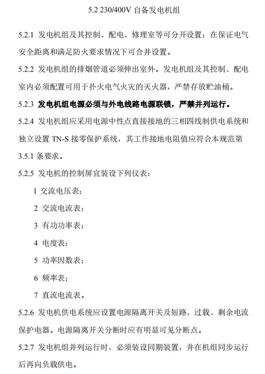 5.2.3 發電機組電源必須與外電線路電源聯鎖,嚴禁并列運行。