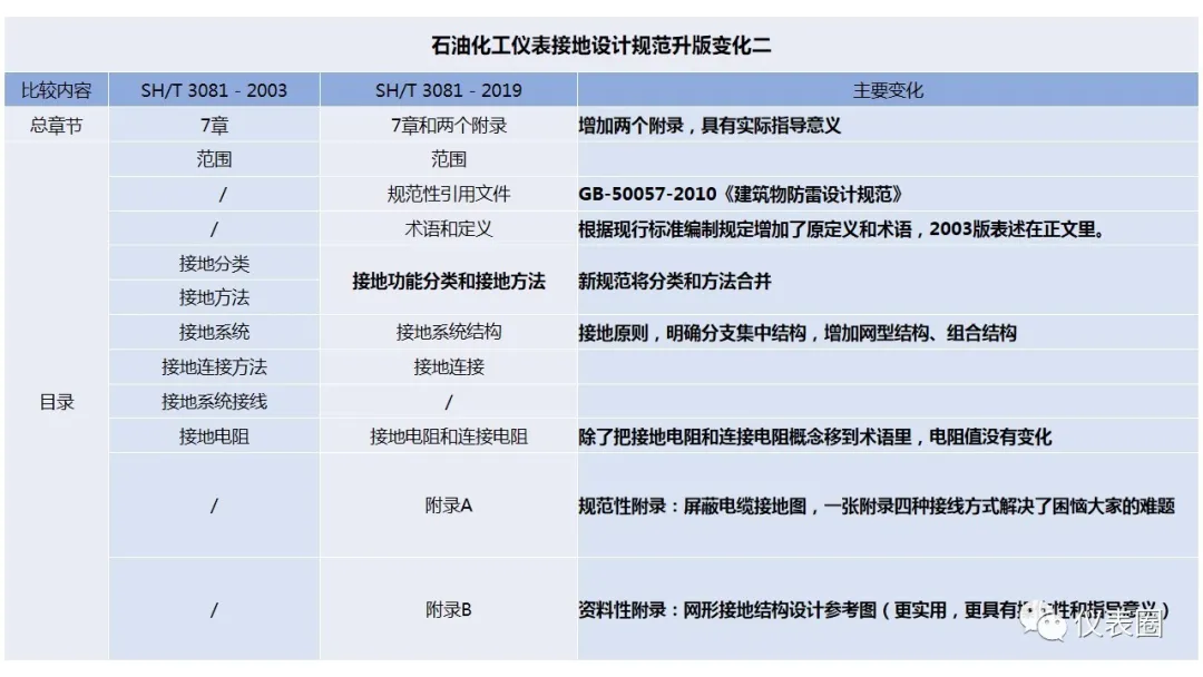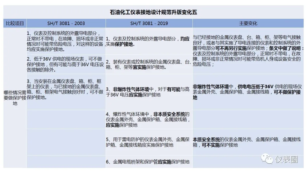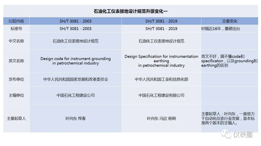 SH/T 3081-2019《石油化工儀表接地設(shè)計規(guī)范》,2020年1月1日起實施。為了幫助圈友加深對規(guī)范的理解,特邀資深圈友針對新舊規(guī)范,進行了詳細(xì)的解讀,那么究竟SH/T 3081-2019有哪些重大變化呢?讓我們繼續(xù)往下閱讀。