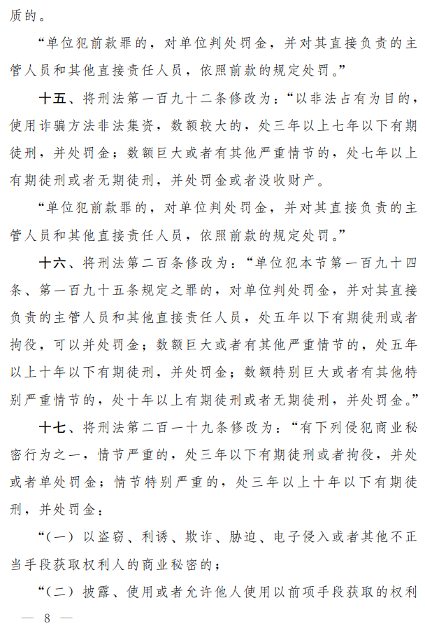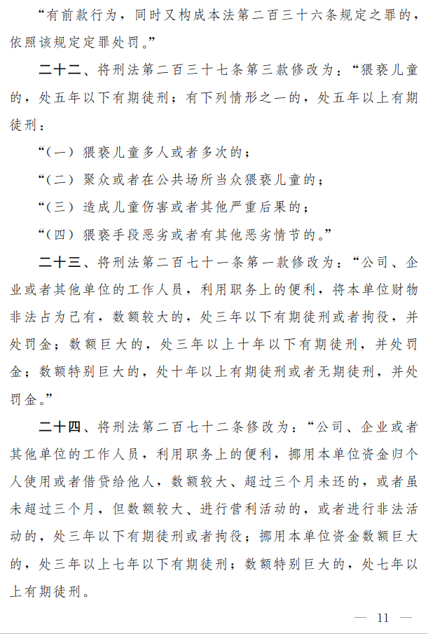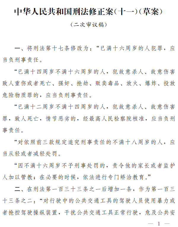 第十三屆全國(guó)人大常委會(huì)第二十二次會(huì)議對(duì)《中華人民共和國(guó)刑法修正案(十一)(草案二次審議稿)》進(jìn)行了審議,現(xiàn)公布《中華人民共和國(guó)刑法修正案(十一)(草案二次審議稿)》全文。
