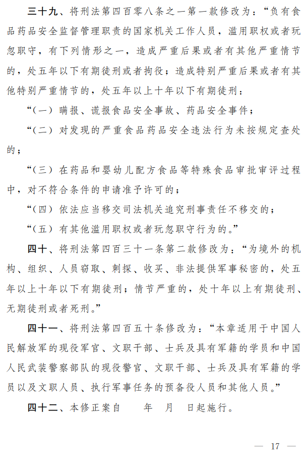 從二次審議稿內(nèi)容來(lái)看, 關(guān)于食品藥品監(jiān)管瀆職罪的規(guī)定與今年7月份的發(fā)布的草案相比 ,有了重大變化,取消了“未及時(shí)發(fā)現(xiàn)監(jiān)督管理區(qū)域內(nèi)重大食品藥品安全隱患的“的規(guī)定。草案內(nèi)容具體如下: