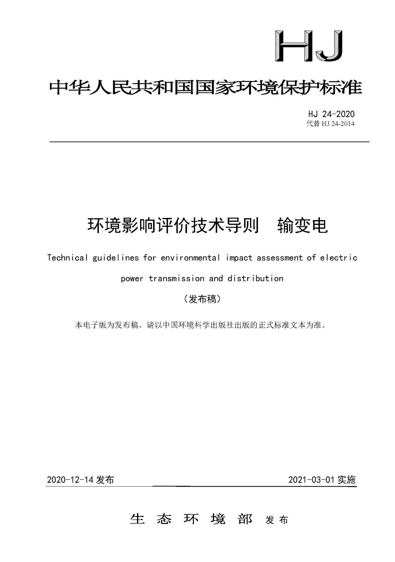 二、《環(huán)境影響評價技術(shù)導(dǎo)則 輸變電》(HJ 24-2020)