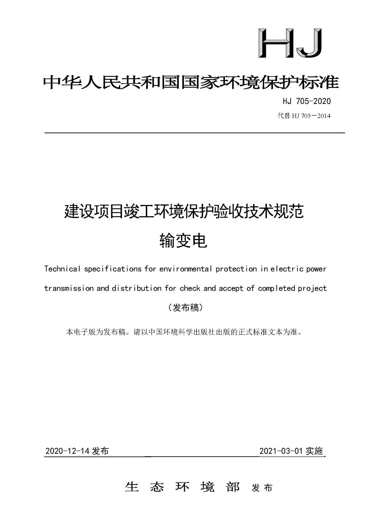 自上述標(biāo)準(zhǔn)實施之日起,《環(huán)境影響評價技術(shù)導(dǎo)則 輸變電工程》(HJ 24-2014)、《建設(shè)項目竣工環(huán)境保護驗收技術(shù)規(guī)范 輸變電工程》(HJ 705-2014)廢止。