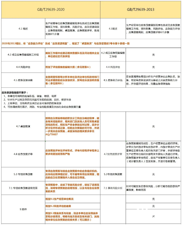 GB/T 29639-2020修訂了“應急預案”、“應急救援”的術語和定義,刪除了GB/T 29639-2013中的“應急準備”、“應急救援”、補充了“應急預案評審”的術語和定義。