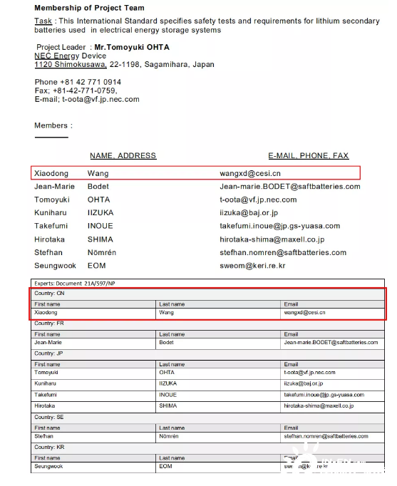 中國電子技術標準化研究院(賽西,CESI)作為IEC/SC21A國內總歸口單位,多年來一直積極參與電池領域相關的國際標準化活動,負責向IEC推薦行業專家、組織電池行業相關單位成員參加IEC/SC21A國際會議、答復IEC文件和投票工作。賽西專家作為IEC 63056:2020的項目組成員和起草人直接參與了該標準的起草工作。