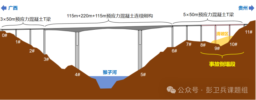 05 小結 (1)根據當前披露的相關信息,本次事故的主要原因為突發降水導致的山體滑坡,引起橋墩及上部結構破壞,有報道稱,所幸養護部門預先上路排查及時發現變位,防止了更大傷亡。 (2)山區橋梁選址時,要盡量避免有滑坡、危巖落石等風險的地質災害區;如不能避免,應采取有效工程手段提高地質災害區域穩定性。 (3)跨越可能有滑坡、泥石流等地質災害易發區域時,采用單跨簡支結構或者相對較弱的先簡支后連續,將橋墩的倒塌區域控制在橋墩相鄰2跨,避免連續倒塌以利于后期修復。 (4)我國山區橋梁規模巨大,始終存在發生超出設計預期的地質災害的概率,綜合考慮在造價和結構性能上尋找平衡以選擇適合的結構型式,同時建議加強風險區域橋梁倒塌預警監測,減少事故產生人員傷亡。