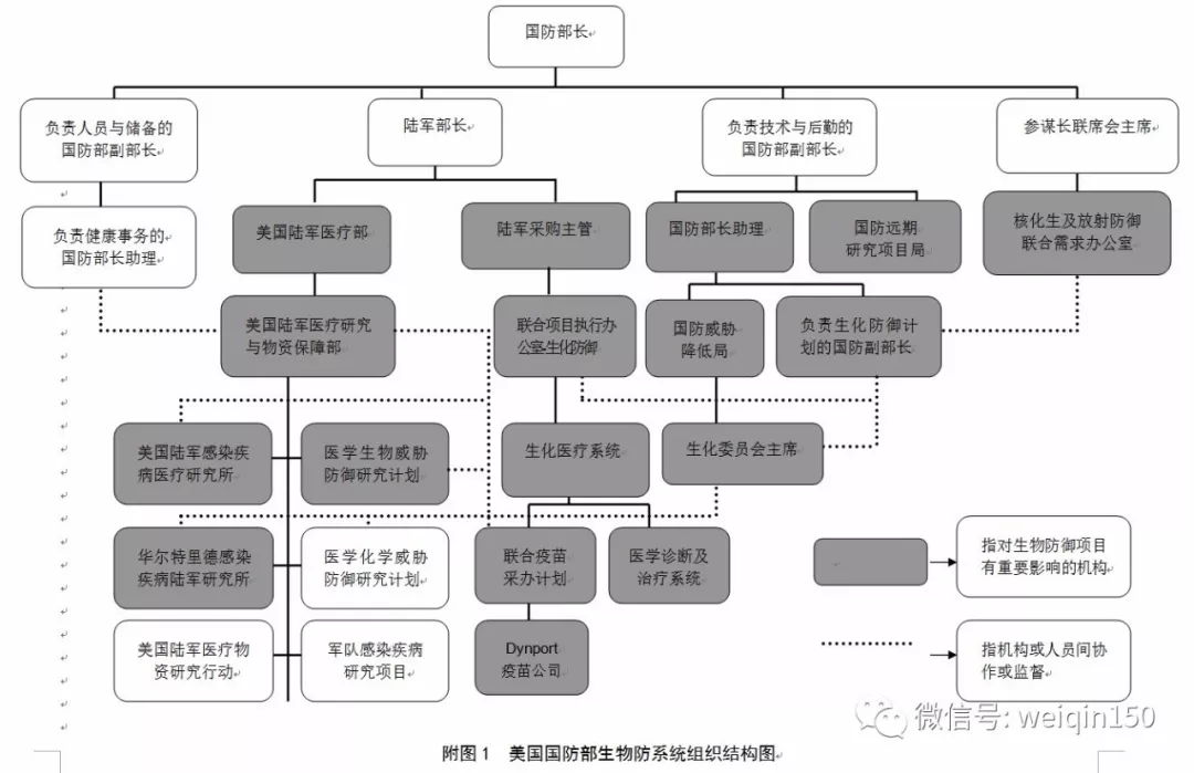 A. 美國國防部生物防御系統組織結構及美軍應對核、化、生威脅防御功能總體行動框架。
