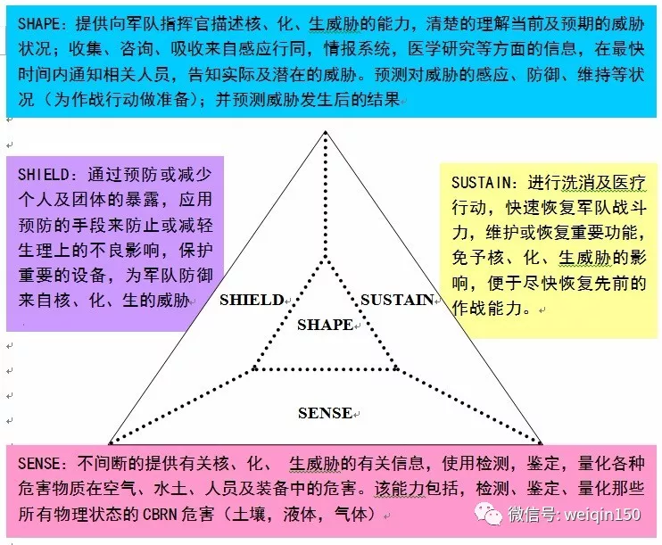 陸軍士兵化生司令部地區化生反應分隊:由專業人員組成,能向聯邦、州及地方官員提供應對生物恐怖襲擊的技術援助。主要任務是協調和整合國防部在清污、控制、拆除生物戰劑中技術支援,可以對軍隊應對生物襲擊事件進行綜合部署,并承擔應急救援任務。陸軍技術防護隊:其基本行動單元是化學生物反應分隊,每個分隊都由生化專家及爆炸物處理專家組成,可以部署到事件發生現場,將可以樣品運送到合適的實驗室檢測。具有對生物戰劑進行檢測、洗消、限制、拆除和處理的能力。海軍陸戰隊化生事件反應部隊:隨時準備應對無征兆的生物恐怖襲擊事件,快速部署先頭應急反應力量及必要的后續力量,同時開展艦隊防護訓練。特殊醫學擴展反應小組:由受過專業培訓的醫學人員組成,可以對核化生事件快速響應部署,提供有關如何準備應對威脅的醫學建議和咨詢,同時提供一線應急救援人員的防護、傷員洗消程序、急救、早期醫學處理等方面的醫學建議和咨詢。