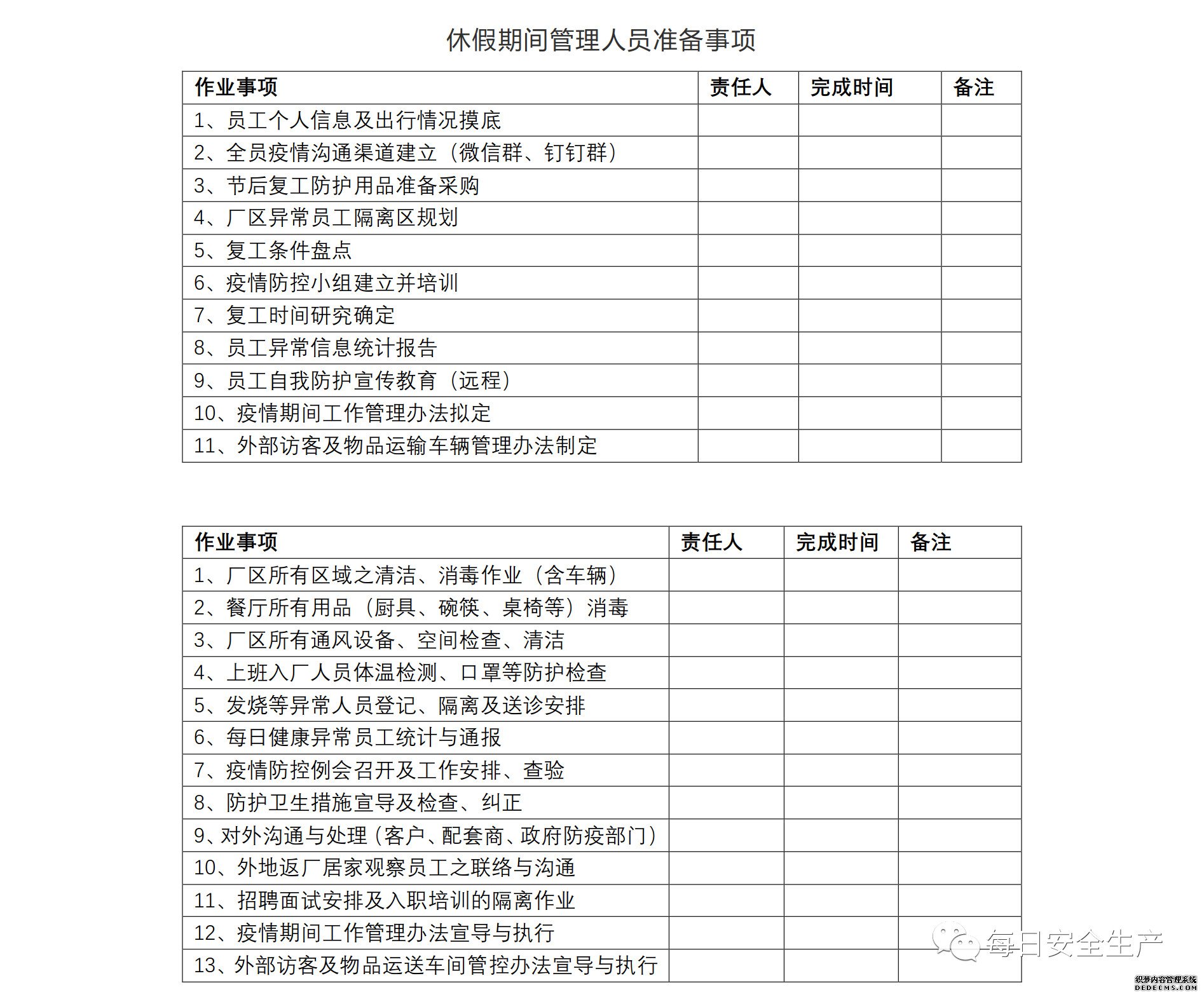 ② 必須制定企業疫情防控工作方案和復工生產實施方案;