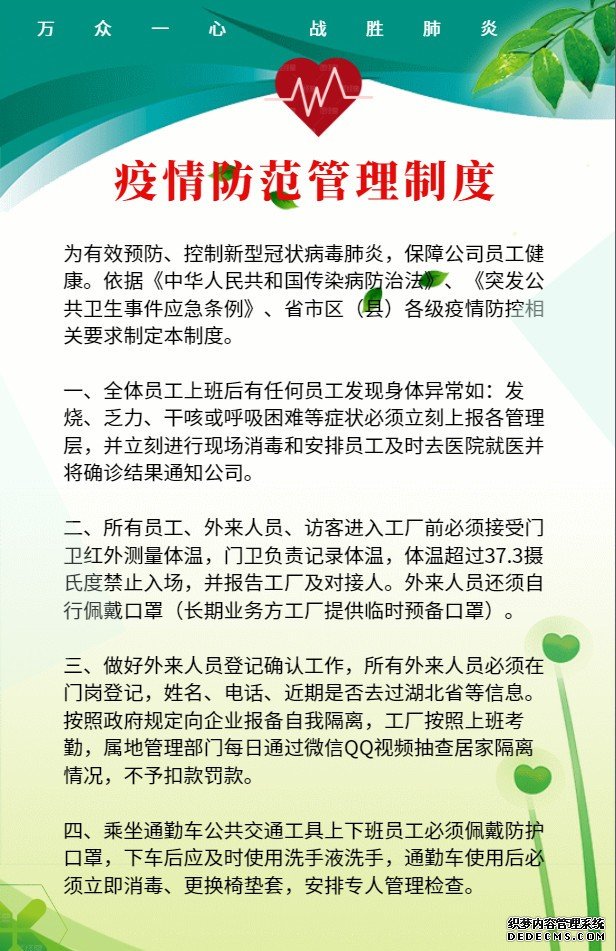 ⑤ 企業、職工參與配合屬地政府、社區(村)聯防聯控承諾要到位。