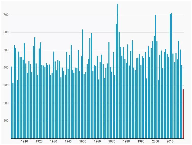 遠(yuǎn)低于1902年314.46毫米的歷史最低記錄