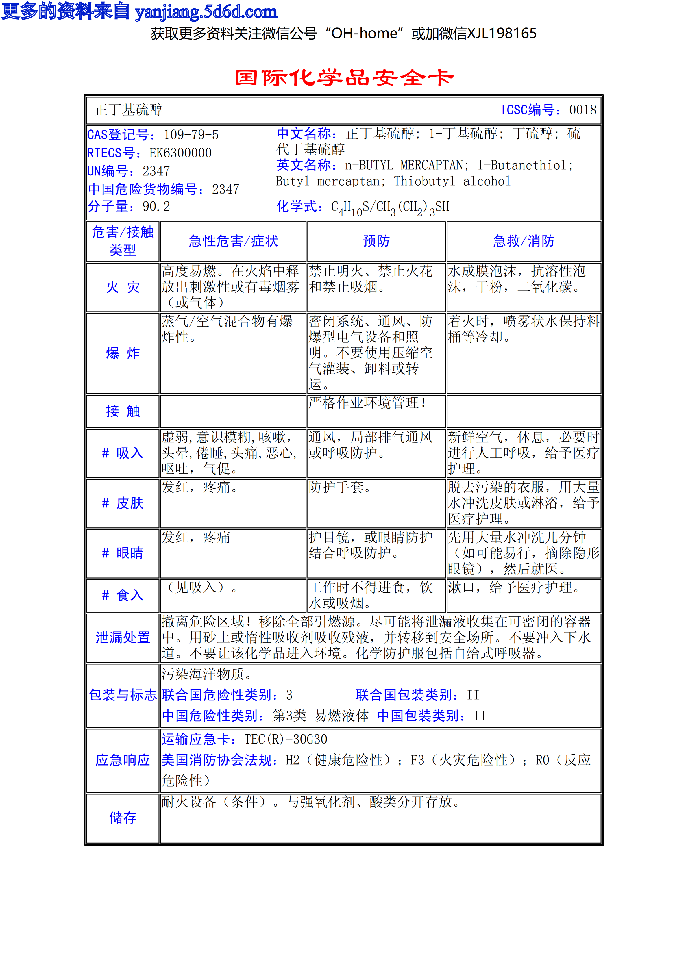 正丁基硫醇MSDS