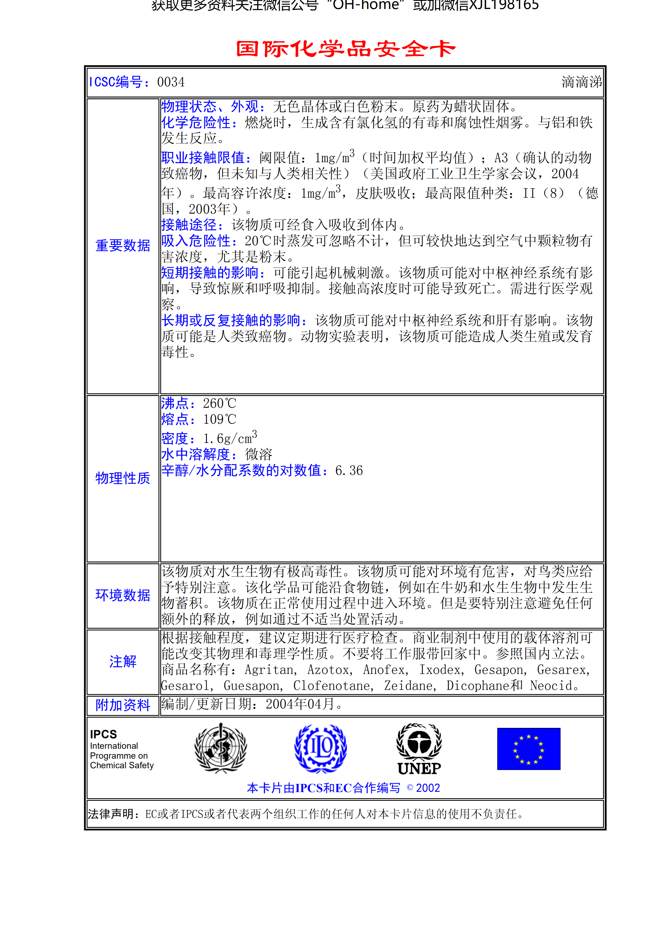 滴滴涕MSDS