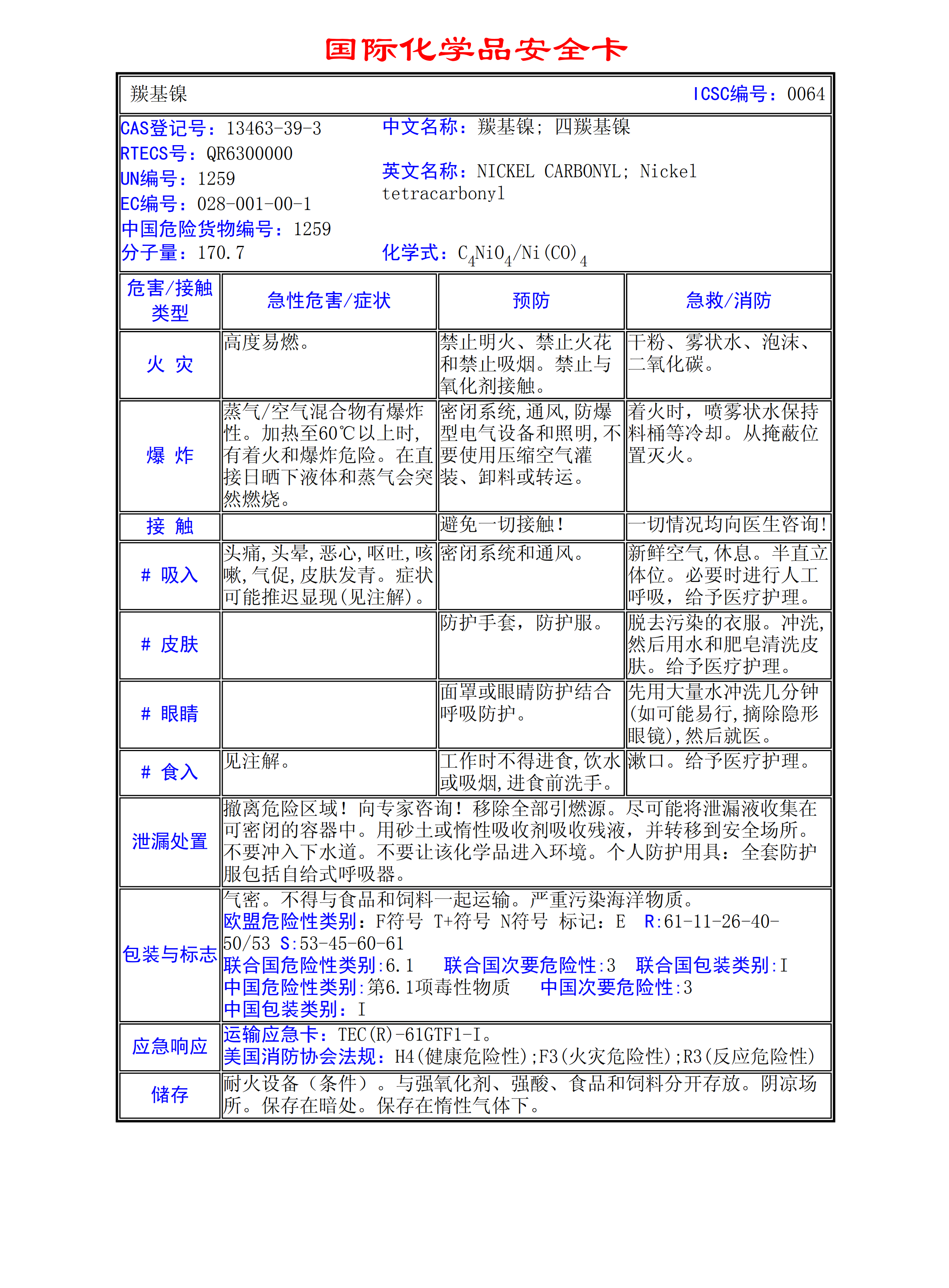 羰基鎳MSDS