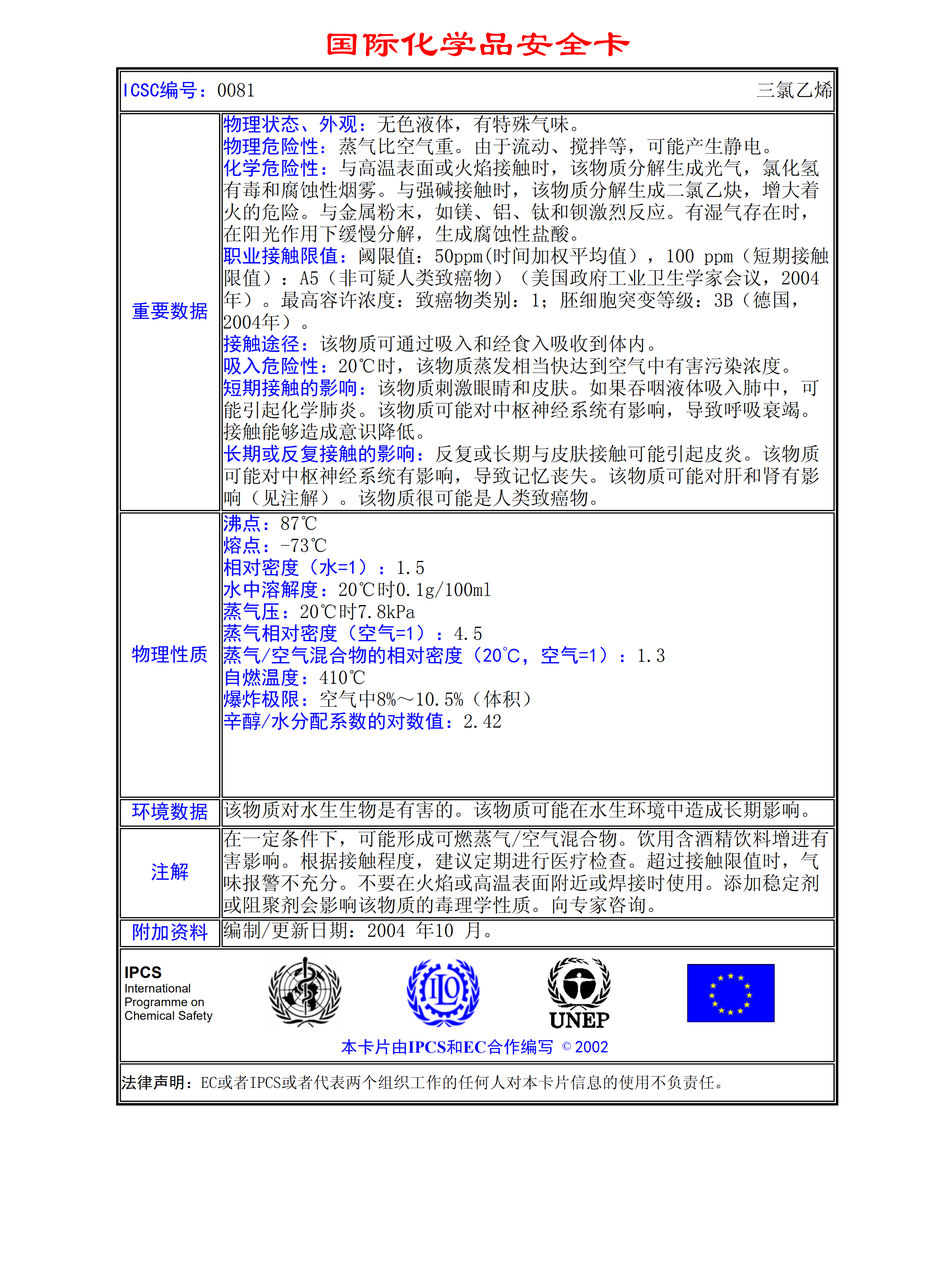 三氯乙烯MSDS