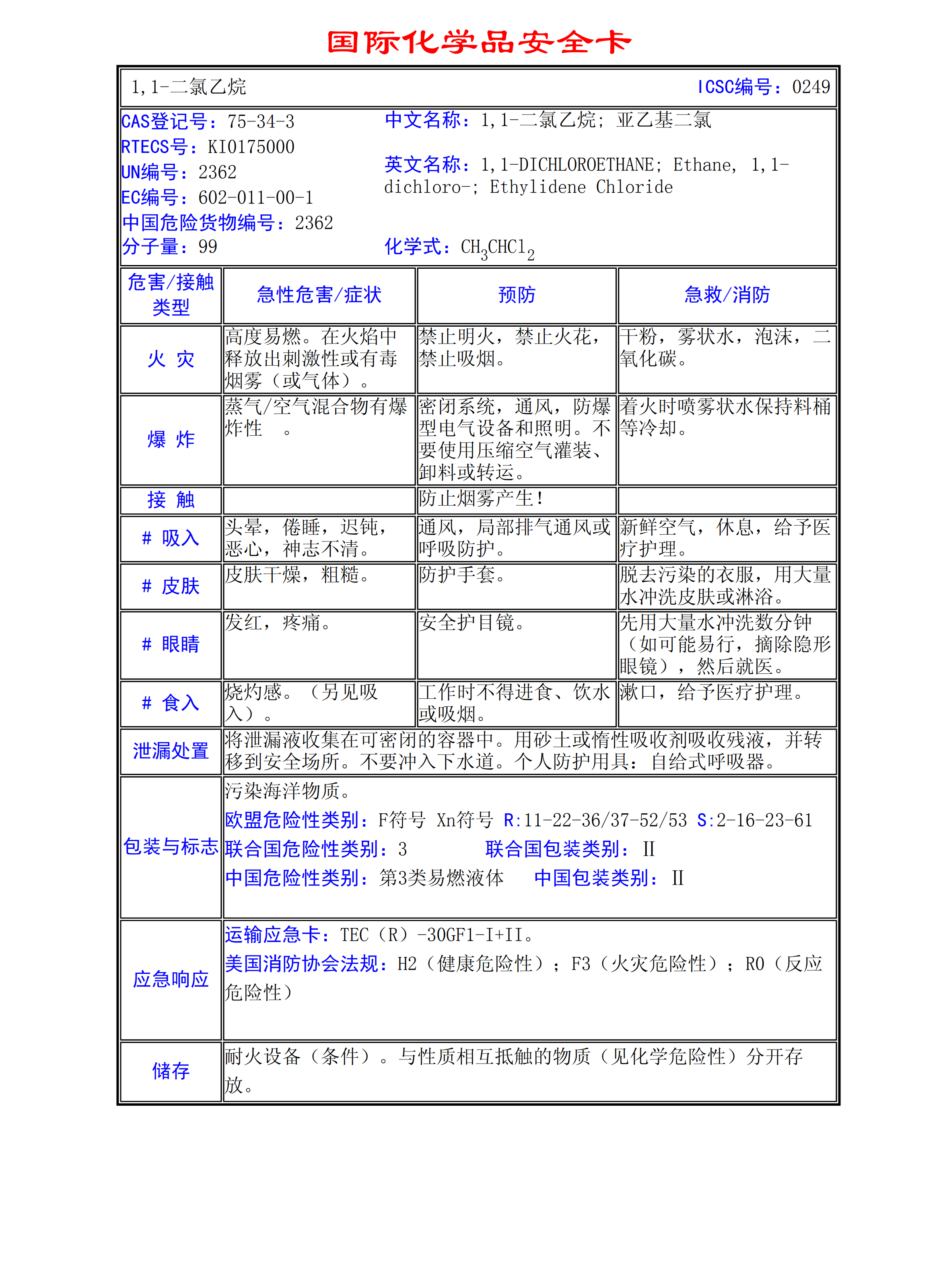 1,1-二氯乙烷MSDS