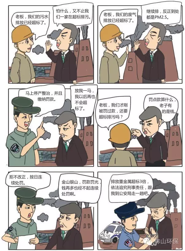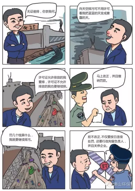 2016年5月-10月,佛山環保全面梳理了現行環保法律法規中與企業最密切相關、最常見的違法行為,整理歸納了對應的懲處措施和法律責任,運用通俗的語言、生動的圖畫,推出了【企業環保法律風險及其防范】系列微信