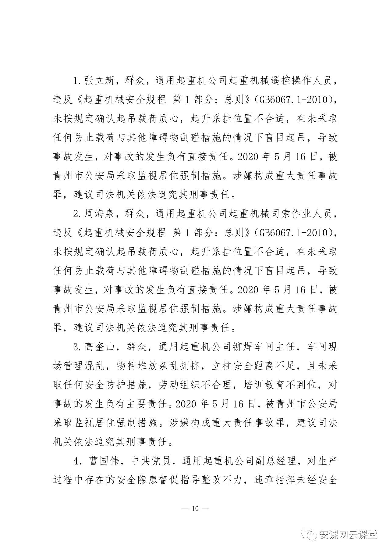 曹國偉,中共黨員,通用起重機公司副總經理,對生產過程中存在的安全隱患督促指導整改不力,違章指揮未經安全教育培訓的工人上崗作業,對事故的發生負有主要責任。