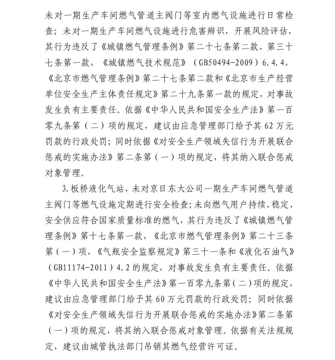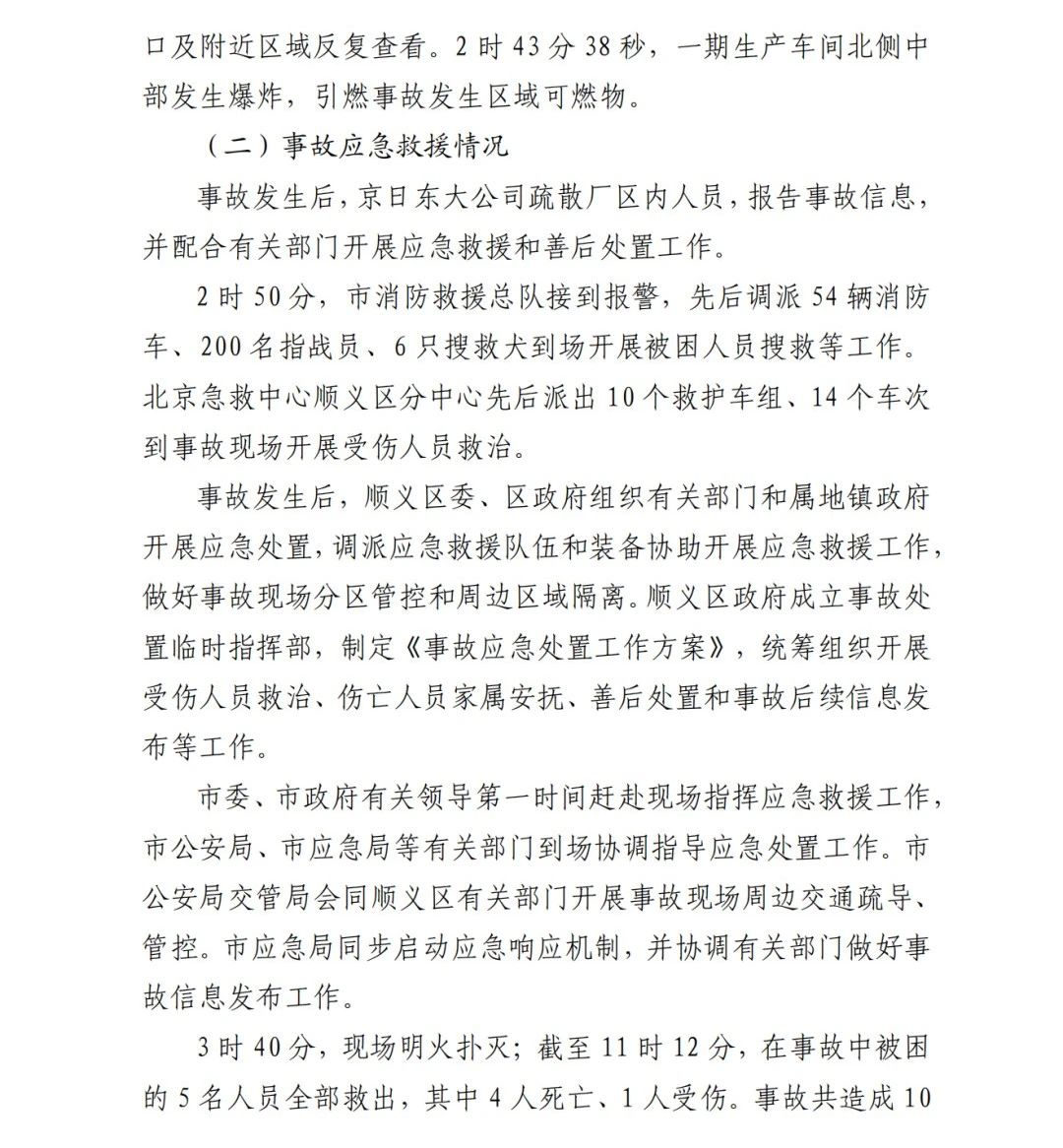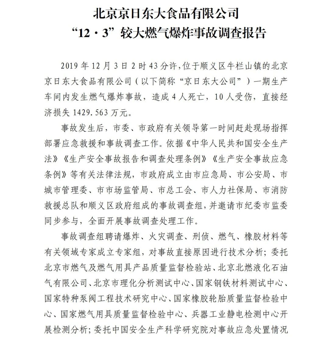 2019年12月3日2時(shí)43分許,北京順義區(qū)牛欄山鎮(zhèn)的(以下簡(jiǎn)稱“京日東大公司”)一期生產(chǎn)車間內(nèi)發(fā)生燃?xì)獗ㄊ鹿剩斐?人死亡,10人受傷,直接經(jīng)濟(jì)損失1429.563萬(wàn)元。