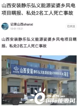 從媒體報(bào)道,山西安裝靜樂弘義能源娑婆鄉(xiāng)200MW風(fēng)電項(xiàng)目,于2021年1月18日發(fā)生一起2名工人在幸村鄉(xiāng)標(biāo)段作業(yè)途中傷亡事故。該項(xiàng)目部并未向上級政府部門上報(bào),私自隱瞞處理此事。