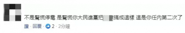 也有網(wǎng)友怒斥民進黨當(dāng)局:不是驚慌停電,是驚慌你民進黨把臺灣搞成這樣,這是你任內(nèi)第二次了。↓