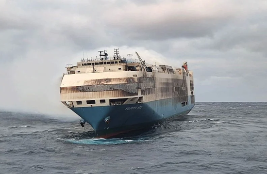 美國有線電視新聞網(CNN)2日報道稱,Felicity Ace貨輪幾乎燒得一無所剩,被拖回安全港口時沉入海中。