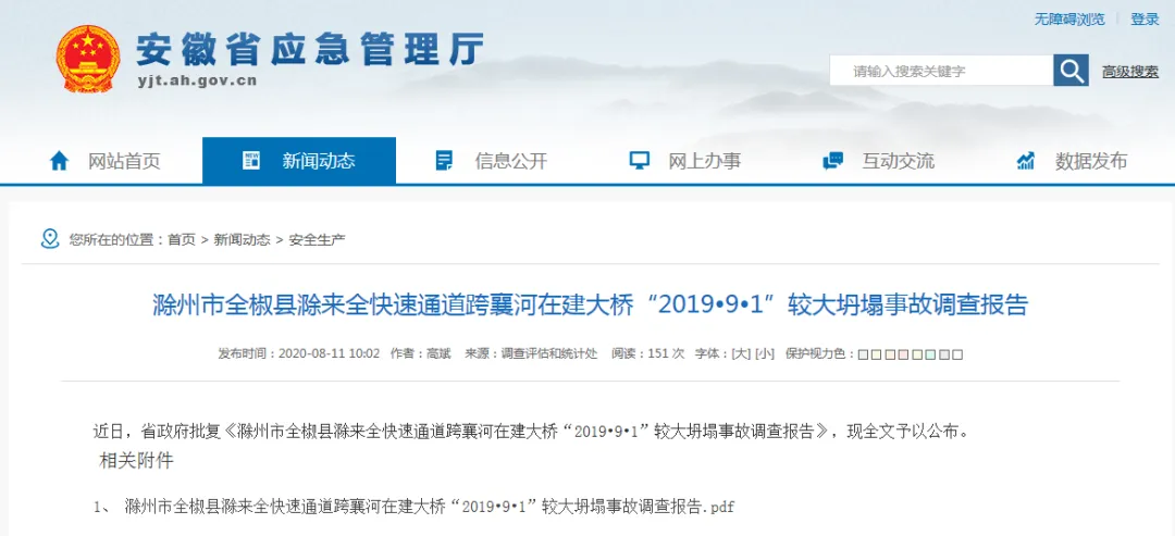 調查報告提出,對事故責任人陳國順、雷暴和王輝3人建議依法由公安機關立案調查。對事故相關企業的11名責任人分別給予行政處罰;對事故相關政府、部門(單位)等8名人員分別給予相應的政務處分和實施組織處理;對6家事故相關責任單位給予相應的經濟處罰同時建議建設行政主管部門按相關規定進行處罰。責成全椒縣交通運輸局、全椒縣住房和城鄉建設局分別向全椒縣人民政府作出深刻書面檢查;責成全椒縣建筑工程質量監督站向全椒縣住房和城鄉建設局作出深刻書面檢查;責成全椒縣人民政府向滁州市人民政府做出深刻書面檢查。在事故防范措施建議中調查報告要求:滁州市及全椒縣人民政府要認真吸取事故的慘痛教訓,切實加強對安全生產工作的領導,督促各有關部門依法履行安全生產監督管理職責、督促相關企業落實安全生產主體責任,及時解決安全生產監督管理中存在的問題;要強化執法,加大執法檢查力度,嚴格查糾違法違規行為。滁州市及全椒縣交通運輸部門要深刻吸取此次事故教訓,舉一反三,加大對交通建設工程各項監管力度,切實履行交通建設工程監管職責。有關企業要強化管理,嚴格落實企業安全生產主體責任。