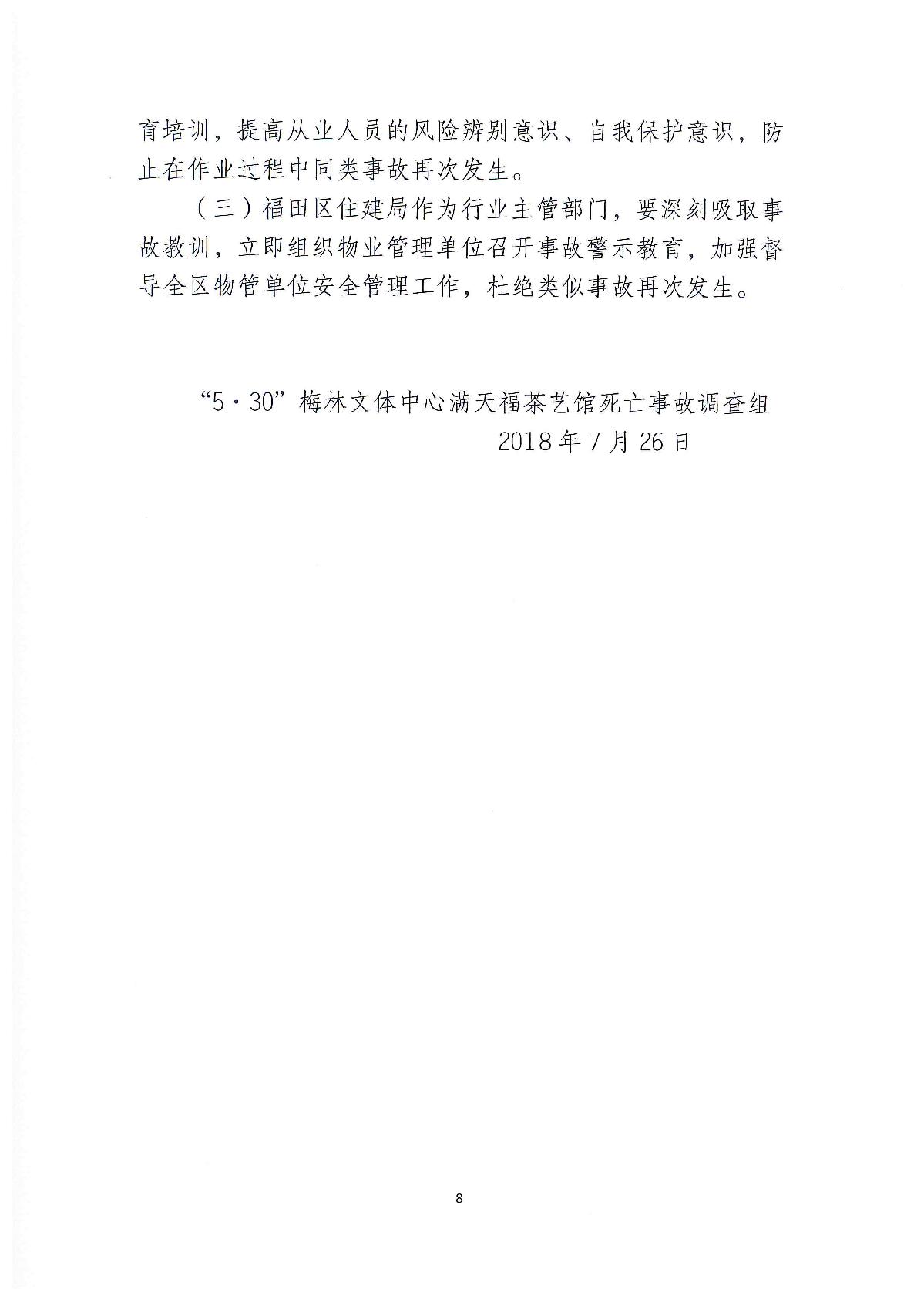 “5.30”梅林文體中心滿天福茶藝館死亡事故調查報告