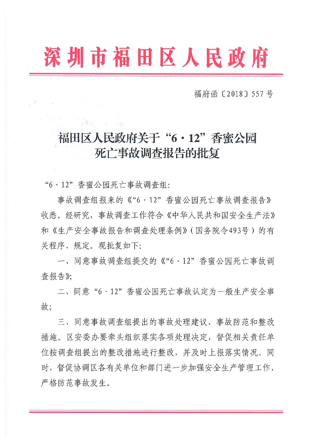 “6.12”香蜜公園死亡事故調(diào)查報告