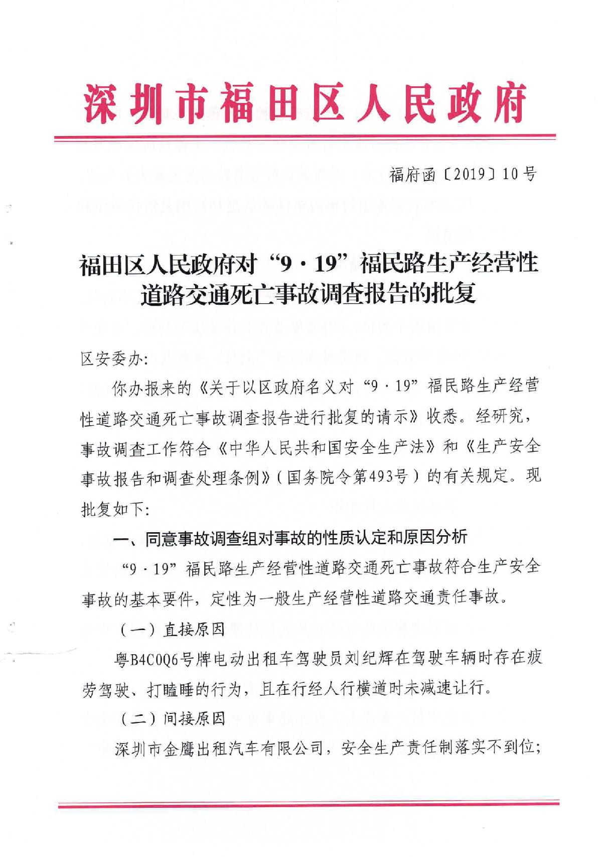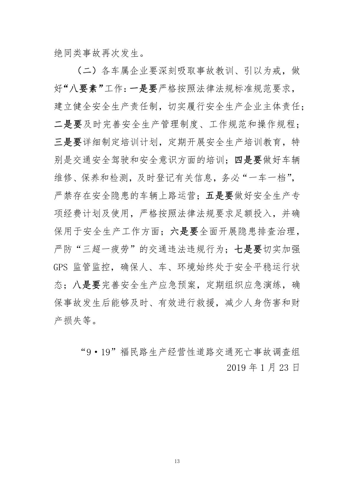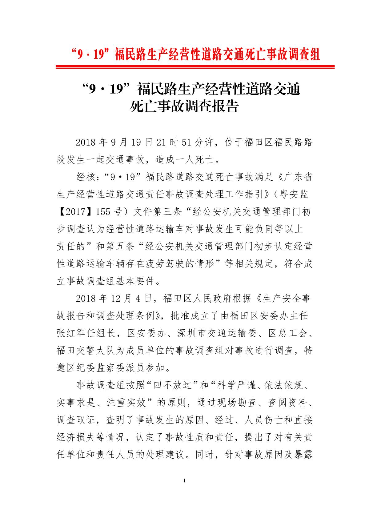“9.19”福民路生產經營性道路交通死亡事故調查報告