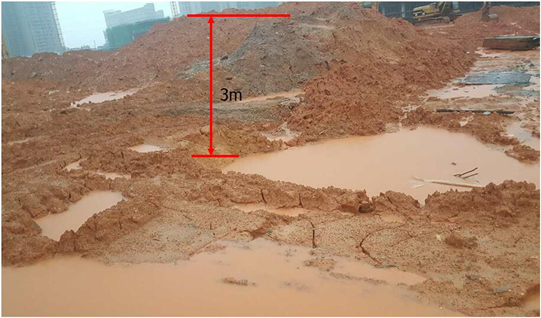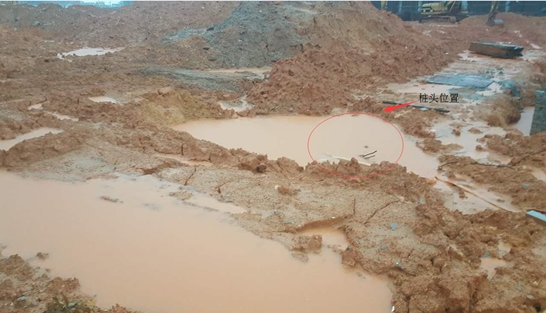 距離事發(fā)集水井南側(cè)約2米處有開挖土方堆填的土堆,土堆高約3m,坡度約為45°,面積約50*40㎡。(如下圖)