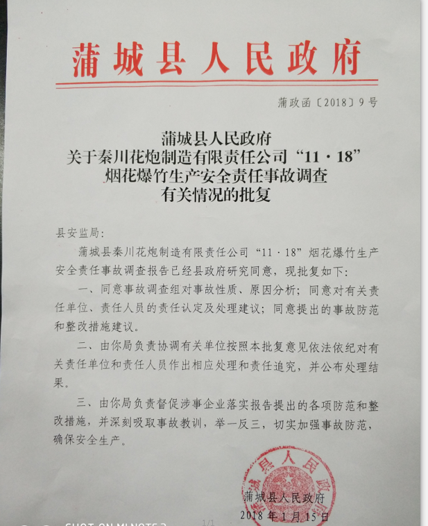蒲城縣秦川花炮制造有限責任公司“11?18”煙花爆竹一般生產安全責任事故調查