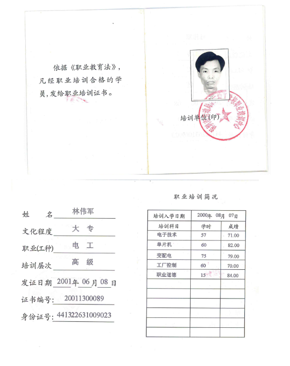 電工 | 林偉軍 | 20011300089 | 13686403063 |