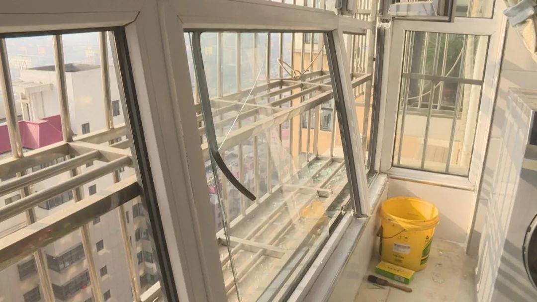 這是贊皇縣翰林官邸小區(qū)11號樓前監(jiān)控視頻拍攝的畫面。從監(jiān)控上看,樓上住戶玻璃破損有大量碎玻璃掉落到樓下。記者了解到這些碎玻璃是從這棟樓21層一戶掉落下來的。之后,記者來到這家住戶屋內(nèi)。