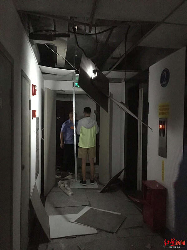 小區(qū)住戶屋內(nèi)爆炸,事發(fā)前保安曾兩次上門提醒有燃?xì)庑孤?本文圖片均來(lái)自紅星新聞業(yè)主們紛紛跑出門,發(fā)現(xiàn)該住宅樓二樓的過(guò)道上,天花板垮了一地,門板、玻璃倒落在地上,二樓一住戶家中門開著,爆炸聲由此傳出。“一位住戶和一位保安受了傷,馬上打120送去了醫(yī)院。”一位住戶稱。