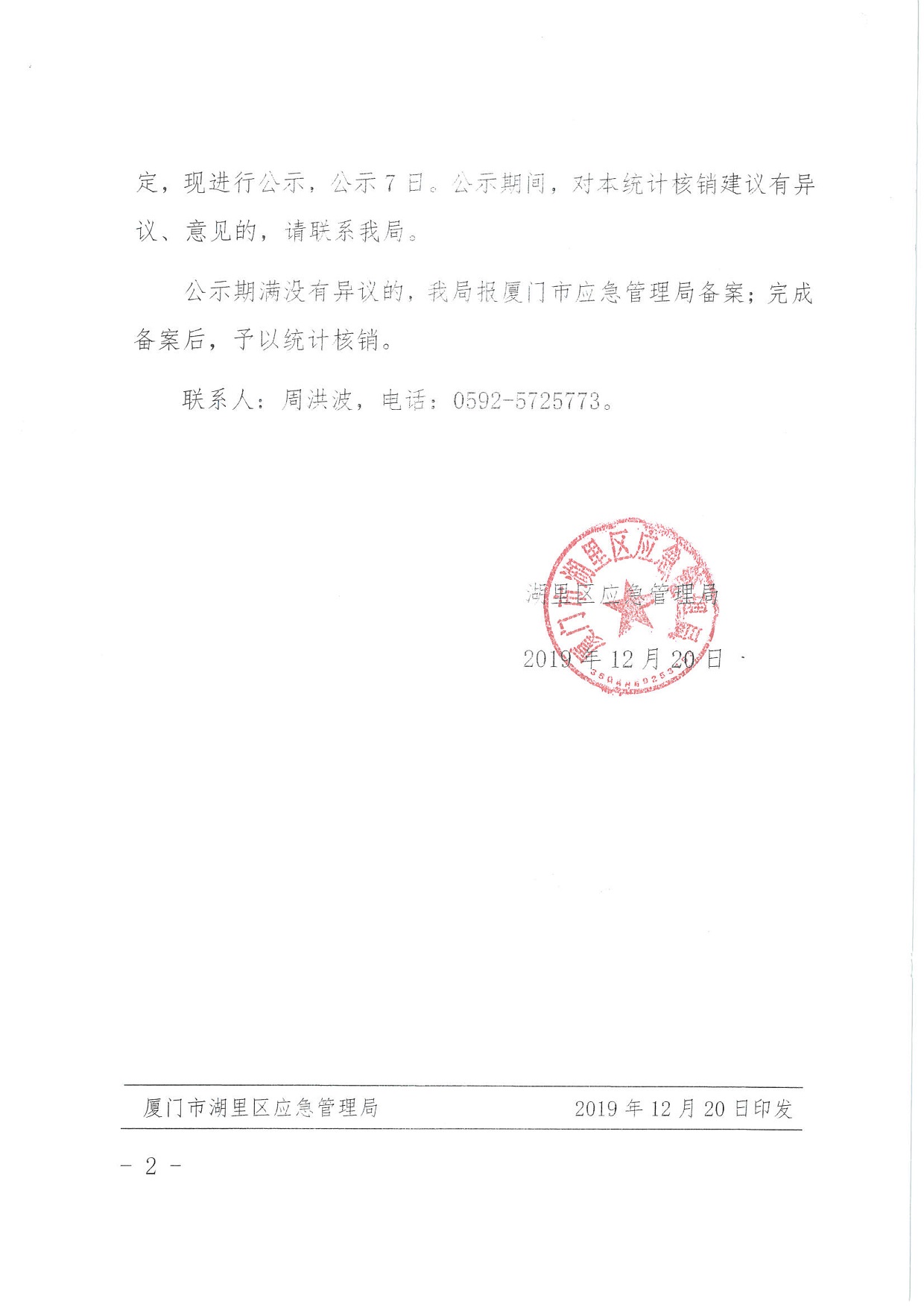 湖里區應急管理局關于建議對“4·8”廈門德易達土石方有限公司亡人事故進行統計核銷的公示