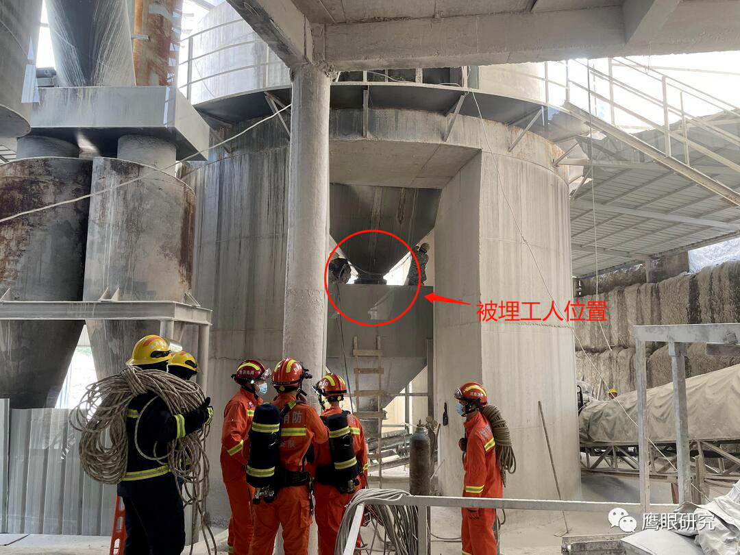 事發(fā)時(shí),被困工人發(fā)現(xiàn)石灰斗罐下料口被堵塞,便進(jìn)入斗罐底部開展疏通工作,罐壁四周的石灰塊突然崩塌,造成該工人當(dāng)場被石灰料埋壓,埋壓深度約1.7米。