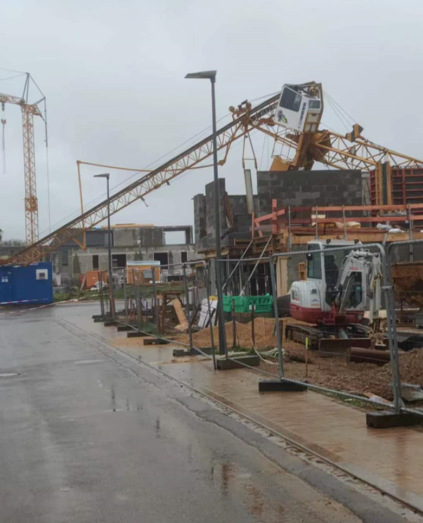 2022年4月9日盧森堡首都一在建工地塔吊施工作業時發生倒塌事故、傷亡情況不明、具體事故原因還在調查中、以官方公布為準、安全生產人人有責、嚴重違章超載作業。