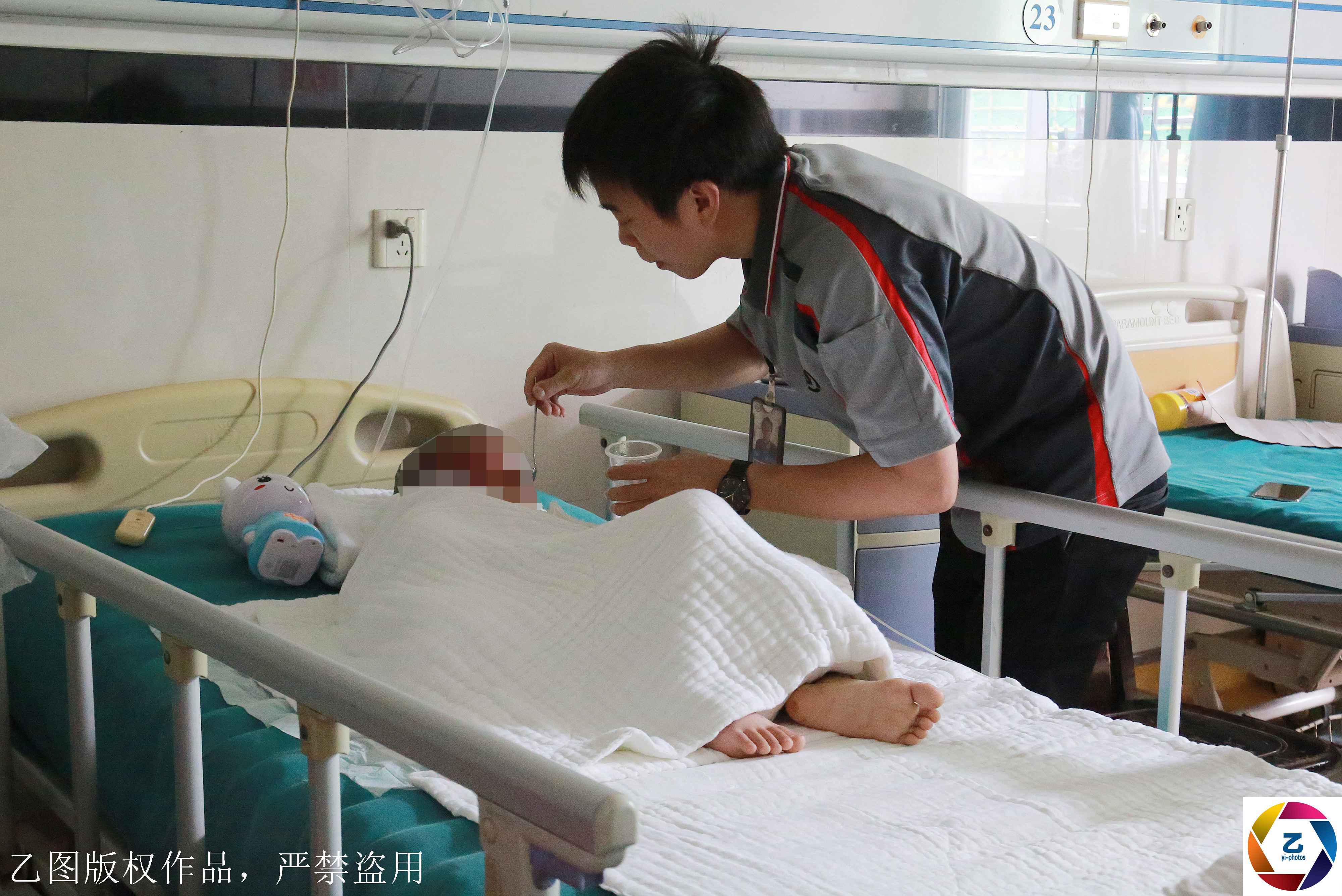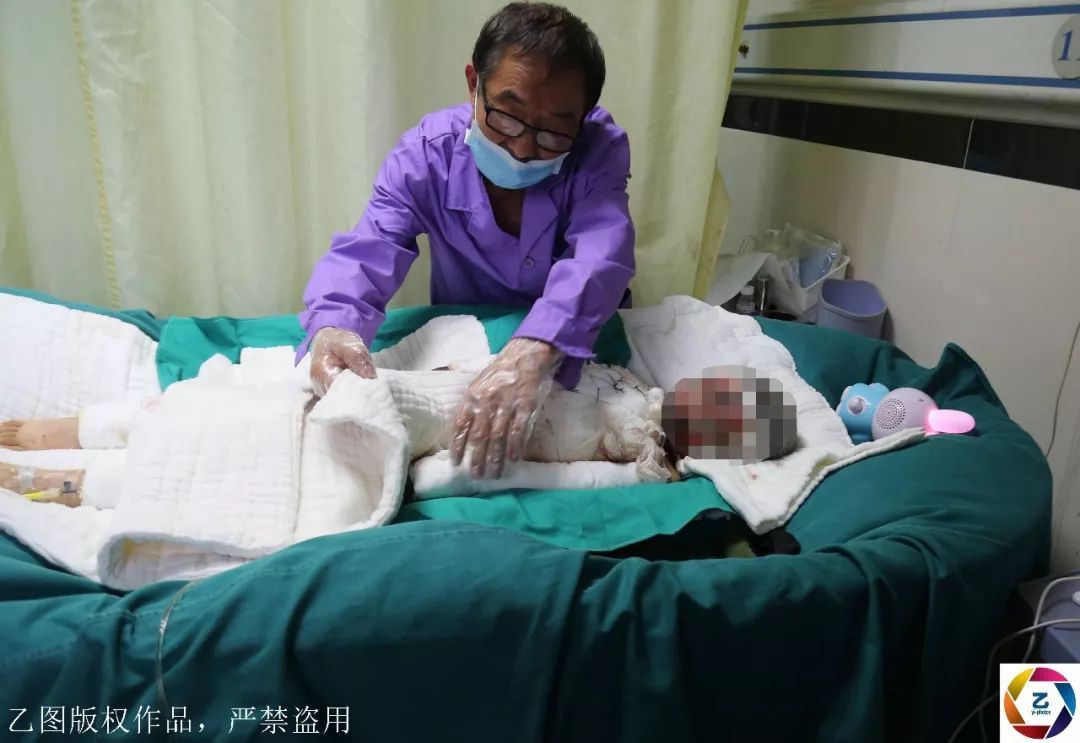 經(jīng)過搶救,小俊逸幸運(yùn)活了下來。據(jù)悉,小俊逸在爆炸中重度燒傷,深二度達(dá)9%,深三度達(dá)40%。醫(yī)生說孩子的雙手無法保住,但是馬上截肢孩子會(huì)有生命危險(xiǎn),需要先治療一段時(shí)間后再做手術(shù)。清醒之后的小俊逸不時(shí)痛苦地呻吟,他還不知道,爸爸和哥哥已經(jīng)永遠(yuǎn)離開了他。圖為護(hù)工在照顧躺在病床上的小俊逸。