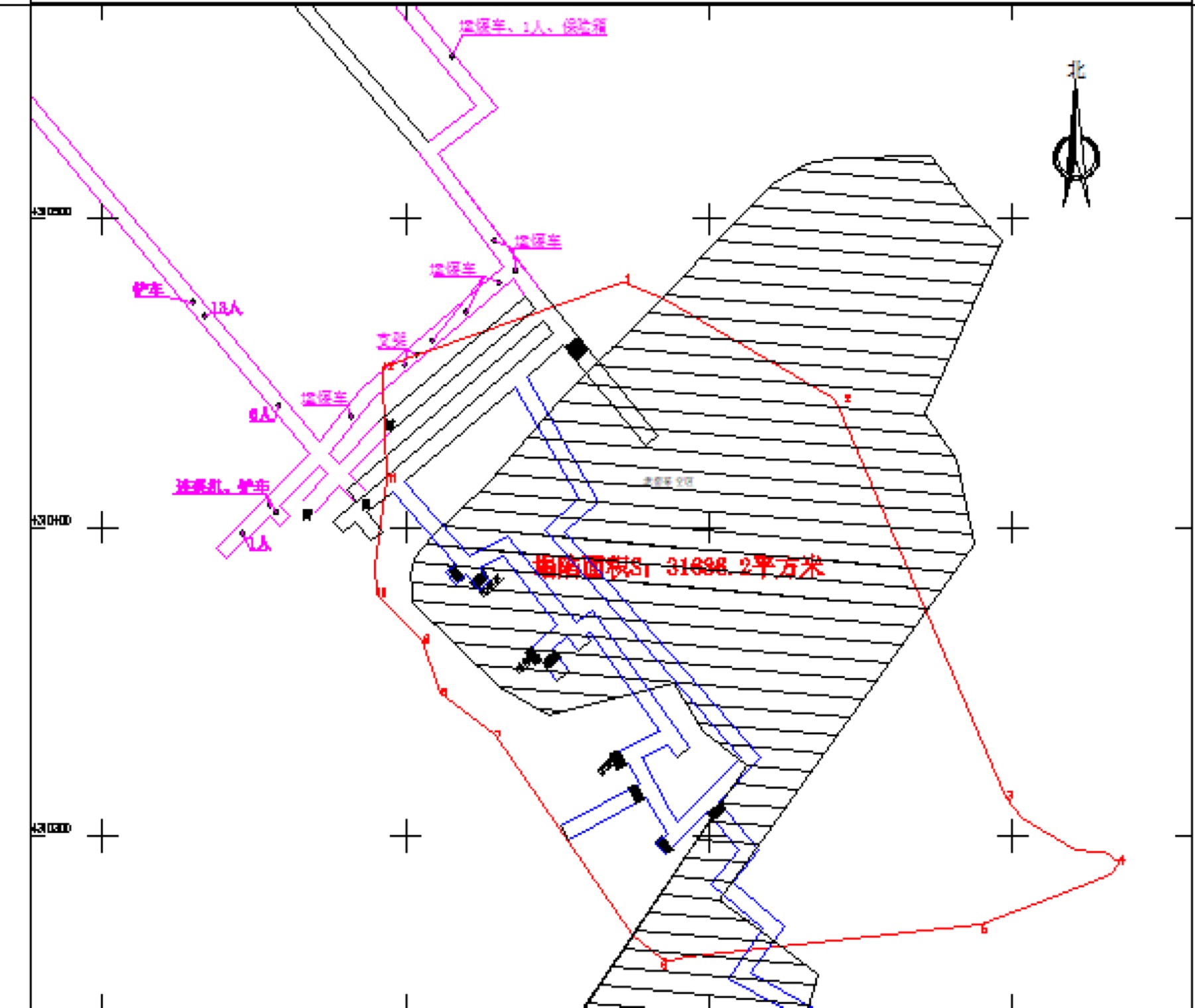 2018年11月,神南產業提交了回采方案。2018年12月,百吉礦業修改編制了《5-1煤南翼連續采煤機短壁回采一區作業規程》。回采方案和作業規程附圖中所示的巷道布置只有506連采工作面切眼(以下簡稱連采切眼)以北的區域,位于連采切眼南側向老窯老空區延伸的巷道沒有繪制在圖紙上。百吉礦業在實際開采中擴大了506連采工作面開采范圍,利用連采切眼位置向南側老窯老空區方向延伸的巷道進行開采,形成506連采工作面南部老空延伸開采區(以下簡稱老空開采區)。老空開采區沒有在回采方案和作業規程中出現,也沒有編制單獨的開采設計、作業規程和安全技術措施。該區域南北長約143米,東西寬約6-43米,于2018年11月28日開始組織回采,至2019年1月1日回采結束,共生產原煤30743.7噸。