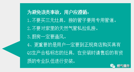 2012年7月27日重慶奉節縣一居民家發生天然氣意外泄漏事故,發生事故的居民家中所有家具和電器都被燒毀,窗戶的玻璃已被震爛。爆炸造成一家6人燒傷,最終一人搶救無效死亡。據網上報道爆炸是由于天然氣管道與輸氣軟管之間存在縫隙,導致天然氣泄漏引發的。在該戶家中,發現新買的燃氣灶具,是個三無產品。該戶的燃氣管道,是由兩根軟管接起來的,一根軟管不夠長,中間還用一根硬塑料管連了起來,還使用了膠水來粘接,這是非常危險的作法,連接的塑料管是硬的,天然氣完全可能因連接處泄漏出來。也許是用戶點了火,也許只是開了某一種電器的開關,就引起了天然氣爆炸,隨后的火焰擴散,屋內東西全部燒毀。