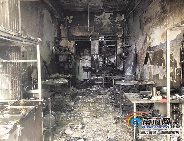海口一家早餐店煤氣泄漏引發(fā)火災(zāi) 店鋪燒毀6個(gè)煤氣瓶燒黑
