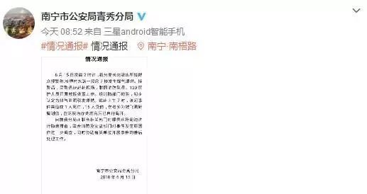 南寧市公安局青秀分局微博發布情況通報↓↓↓