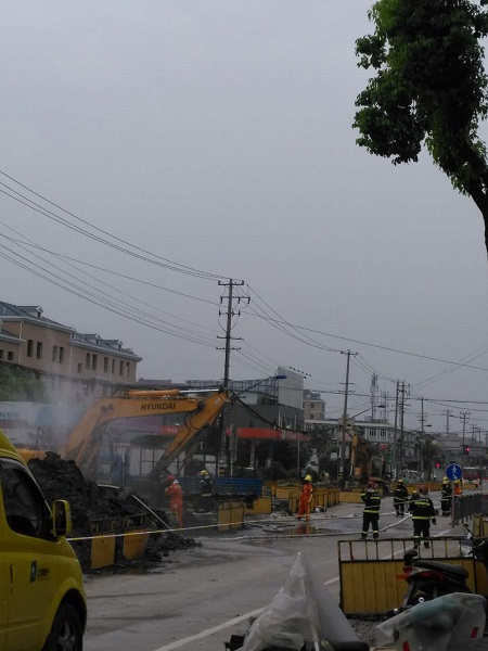 據(jù)附近市民介紹,近期,國權(quán)北路正在進(jìn)行道路施工。昨天下午,一臺挖掘機(jī)在作業(yè)時(shí),不慎將地下一根燃?xì)夤艿劳跀啵D時(shí),大量氣體從管道內(nèi)噴出,空氣中還彌漫著一股濃烈的煤氣味。目擊者稱,管道被挖破后,現(xiàn)場噴出白色氣體,并不斷發(fā)出“嗤嗤”的聲音,工人們見狀,趕緊將挖掘機(jī)熄火。