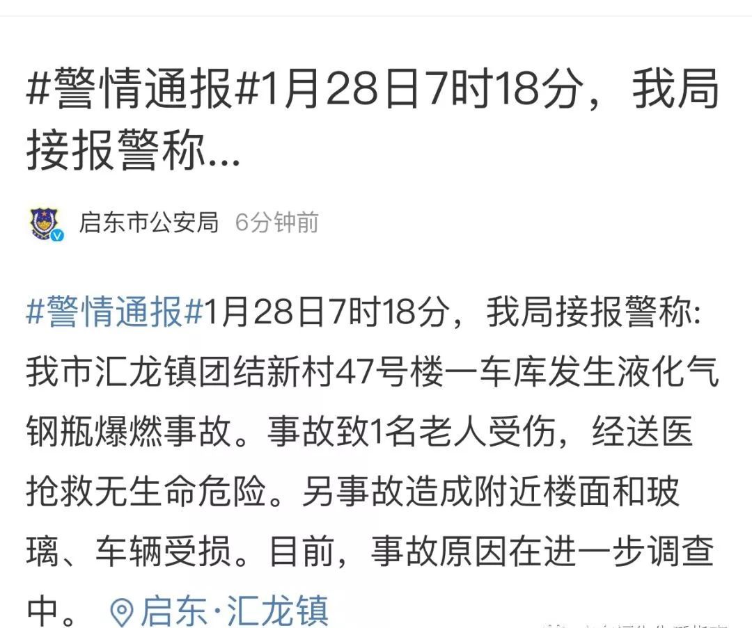 啟東團(tuán)結(jié)新村一車庫(kù)發(fā)生鋼瓶爆燃事故 一老人受傷!