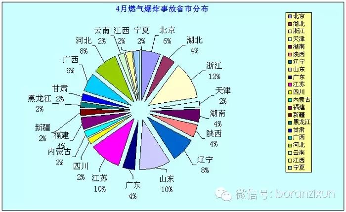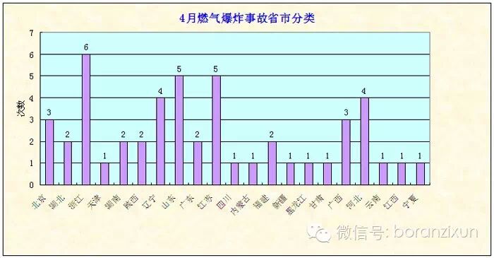 ? ? ? ? ??據不完全統計,2015年4月我國共發生燃氣爆炸事故51次!共造成6人死亡,50余人受傷。其中浙江省發生爆炸事故最多,占全國總數的12%。4月事故中68%發生在民居,另有20%發生在飯店商戶。