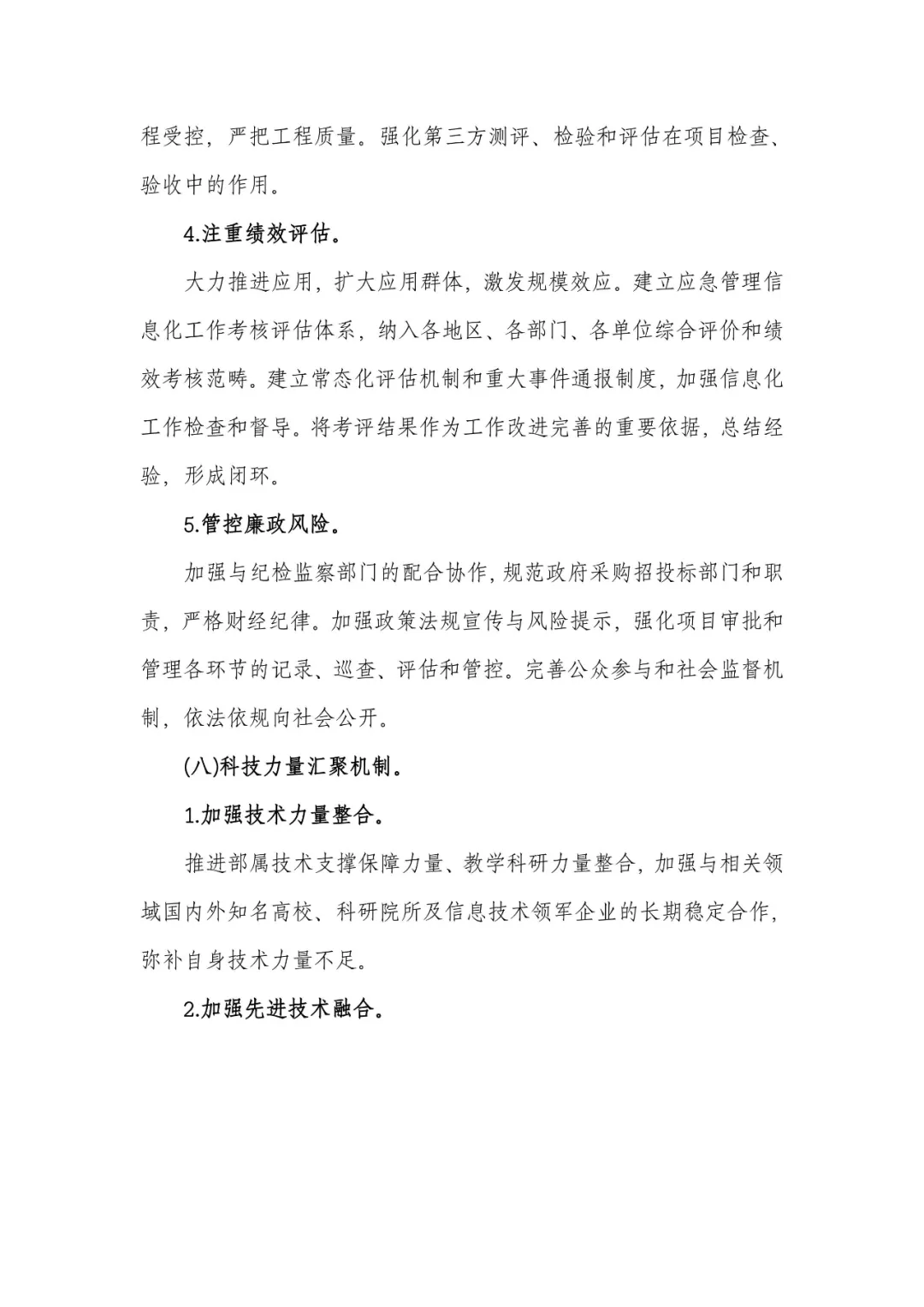 黃明指出,科技信息化工作是全局性、系統(tǒng)性和戰(zhàn)略性工程,要立足當前、著眼長遠,堅持目標導向和問題導向,按照總體設計、分步實施、急用先建、保證質(zhì)量的原則,發(fā)揮好科技信息化的加速器、催化劑作用,實現(xiàn)彎道超車、換道超車,以信息化推進應急管理現(xiàn)代化。要堅持規(guī)劃引領,一張藍圖繪到底。切實維護《應急管理信息化發(fā)展戰(zhàn)略規(guī)劃框架》的權威性、深刻把握規(guī)劃的前瞻性、高度重視規(guī)劃的嚴肅性;要堅持統(tǒng)籌集約,全國建設“一盤棋”。避免各自為戰(zhàn)、煙囪林立、翻燒餅式的老路,堅定不移地走統(tǒng)籌發(fā)展、集約建設的路子,統(tǒng)一建設內(nèi)容、建設布局、建設標準、工作步調(diào);要堅持問題導向,避免建用“兩張皮”。應急管理信息化為應急管理而建、為應急管理而用,必須堅持一切為了實戰(zhàn)、一切圍繞實戰(zhàn)、一切服務實戰(zhàn),把提高應急戰(zhàn)斗力作為檢驗工作成效最根本的標準;要堅持急用先行,蹄疾步穩(wěn)抓推進。年底要實現(xiàn)應急指揮信息網(wǎng)上下貫通,建成應急管理綜合應用平臺和應急指揮一張圖,具備應急指揮調(diào)度能力;要堅持機制創(chuàng)新,打開大門搞建設;要堅持安全風險可控,確保工程安全廉潔。黃明強調(diào),要緊緊依靠科技信息化提升防范化解重大安全風險能力,聚焦需求、突出重點,著力構筑應急管理核心能力。要找準監(jiān)測重點,構建監(jiān)測預警網(wǎng)絡,創(chuàng)新預測預警技術,著力提升監(jiān)測預警能力。明確監(jiān)測內(nèi)容、建設路徑和任務重點,推進危化品安全風險監(jiān)測預警系統(tǒng)建設;要積極探索“互聯(lián)網(wǎng)+監(jiān)管”模式、運用科技信息技術規(guī)范執(zhí)法行為、運用大數(shù)據(jù)發(fā)現(xiàn)系統(tǒng)性問題,著力提升監(jiān)管執(zhí)法能力;要強化應急基礎信息資源匯聚、現(xiàn)場信息獲取、災情研判等能力,著力提升輔助指揮決策能力;要改進裝備,打造救援尖兵利器,著力提升救援實戰(zhàn)能力;要著力提升社會動員和科技支撐能力。黃明要求,各地要把科技信息化建設作為一把手工程,擺在全局的重要位置,加強統(tǒng)籌謀劃和組織推動。要加強協(xié)同配合,科技信息化、業(yè)務、規(guī)劃財務等部門要明確責任、各司其職,各級應急管理部門要齊心協(xié)力,形成工作合力。各級領導干部要樹立不懂信息化就是不懂業(yè)務、學信息化就是學業(yè)務的理念,提高運用科技信息化解決應急管理困難和問題的能力。